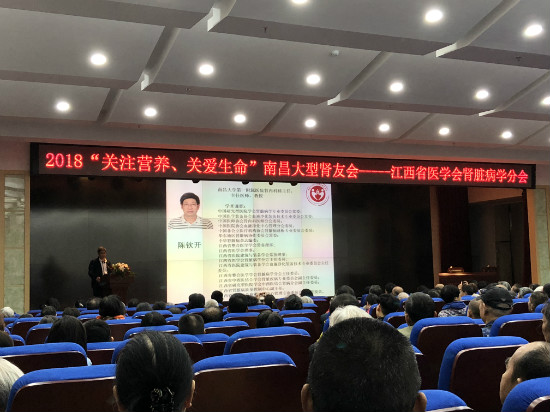 2018年10月14日,江西省首屆大型腎友會在南昌大學(xué)第一附屬醫(yī)院順利召開!由江西省醫(yī)學(xué)會腎臟病學(xué)分會主辦,聯(lián)合南昌大學(xué)第一附屬醫(yī)院腎內(nèi)科、江西省人民醫(yī)院腎內(nèi)科,南昌市第二附屬醫(yī)院腎內(nèi)科、江西省中醫(yī)院腎內(nèi)科、南昌市第一醫(yī)院腎內(nèi)科,南昌大學(xué)第四附屬醫(yī)院腎內(nèi)科,解放軍九四醫(yī)院腎內(nèi)科,南昌市第二醫(yī)院腎內(nèi),南昌市第三醫(yī)院腎內(nèi)科共同舉辦。本次講座主題“透析病患的營養(yǎng)保健”。